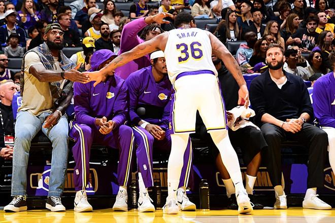 本场比赛中,湖人的先发后场新援马库斯-斯马特(Marcus Smart)的表现还是相当不错的。斯马特全场出场26分41秒,投篮9中4,三分线外7中4,得到了11分3篮板4助攻2抢断1盖帽的全面数据,还有4次犯规,正负值也是达到了+11。斯马特在进攻端出人意料地展现出了不错的外线投射能力,他也是抓住了机会得到了不少的分数,为球队提供了不少的支持。考虑到之前斯马特在三分线外的手感并不理想,他在本场比赛中能够打出这样的表现也是超出大家预期的。除此之外,斯马特也是具备相当不错的传球能力和组织能力,而且他在防守端的表现也依然是极其可靠的。总体来看,斯马特在本场比赛中算是打出了攻守兼备的全能表现,他也是为球队的这场胜利起到了决定性的作用。