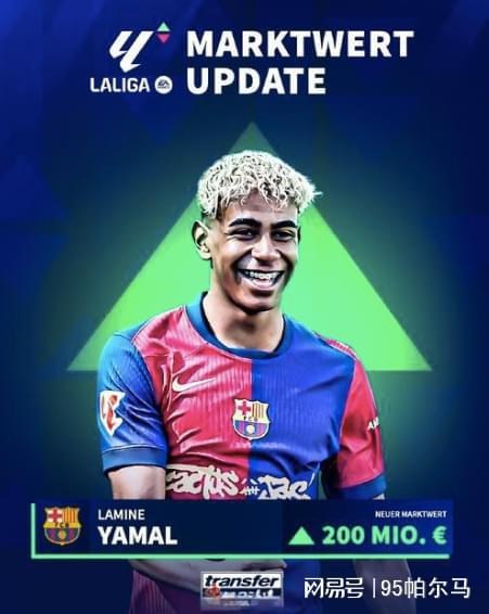 哈兰德、姆巴佩、维尼修斯均是足坛的翘楚者,然而在最新一期的身价排行榜上,这些大腕儿需要“仰望”后浪亚马尔,准确说巴萨10号是当今足坛唯一一个身价达到2亿欧元的巨星,或者说维持了6月份的个人身价。